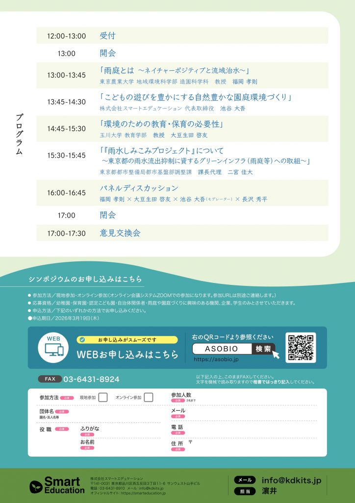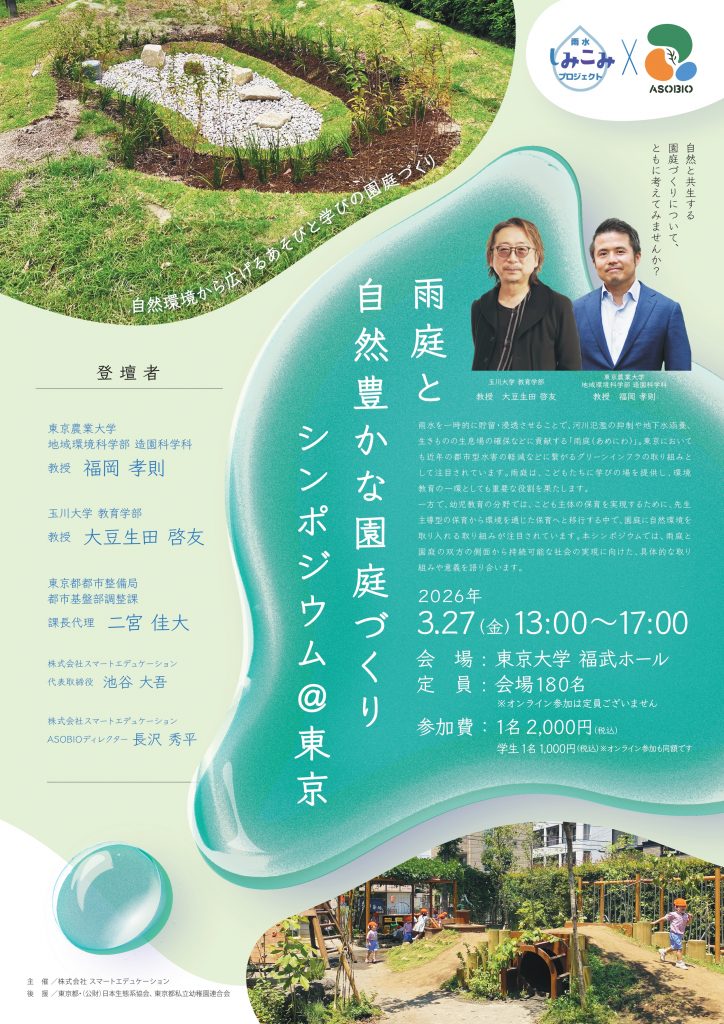 2026年3月27日(金)に東京大学 本郷キャンパス 福武ホールにて「雨庭と自然豊かな園庭づくりシンポジウム@東京2026」を開催します(オンライン参加も可能です)。