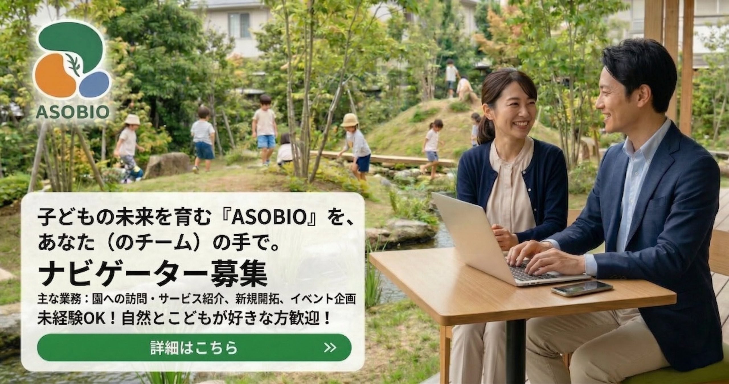 園庭づくり事業(ASOBIO)やスマートエデュケーションの各種サービスを、幼稚園、保育園、こども園の先生方にご提案するナビゲーター業務をお願いできる方(正社員)を募集しています。一般的な会社のような堅苦しい面接はしません。カジュアルな雰囲気でお話をしながら、選考を進めていきます。オンライン(スマホでOK)で数回面談を行い、最終面談は本社(東京都品川区)に来社いただきます。