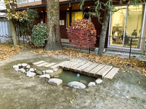 以前の園庭で子どもたちに親しまれていた池。この度、子どもたちが日常の中で本物の「いのち」に触れ、不思議を感じる探求学習の場を再構築したいと考え、ASOBIOさんの協力のもと復活させることにいたしました。