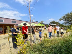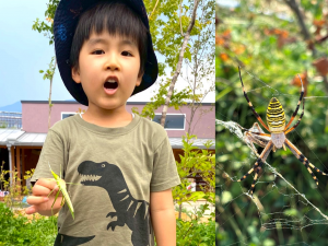 子ども達はこの場所に「子どもも昆虫も植物もみんなキラキラでいられますように」と願いを込めて「キラキラマウンテン」と名づけました。観察していると、ショウリョウバッタが集まってコロニーを作ったり、女郎蜘蛛が鮮やかな巣を張ったりと、新たな生態系が確かに息づいています。その変化を子ども達と一緒に見つける時間は、私達にとっても大きな喜びになりました。