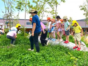 一方で、大勢の子どもが自由にやりたい放題遊べば、山はすぐに踏み固まり、あっと言う間にはげ山になってしまいます。「子どもも昆虫や植物もみんながhappyに過ごすためにはどうしたらいい?」と問いかけながら、子どもと一緒に話し合いを重ねてきました。3か月もたつと予想通り土がむき出しになっている面積が広がってきたので、クローバーの種まきをしたり、遊び方のルールを考えたりと、試行錯誤を続けています。